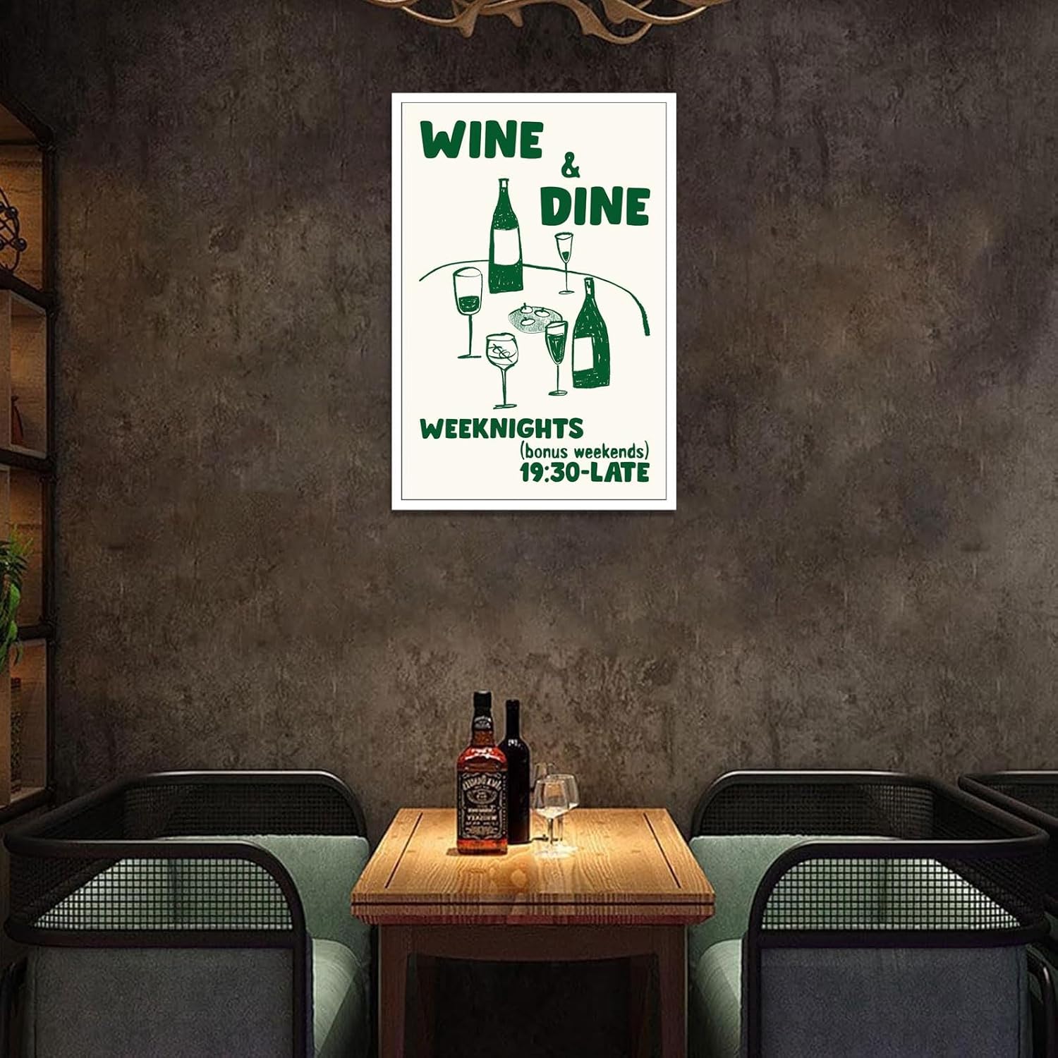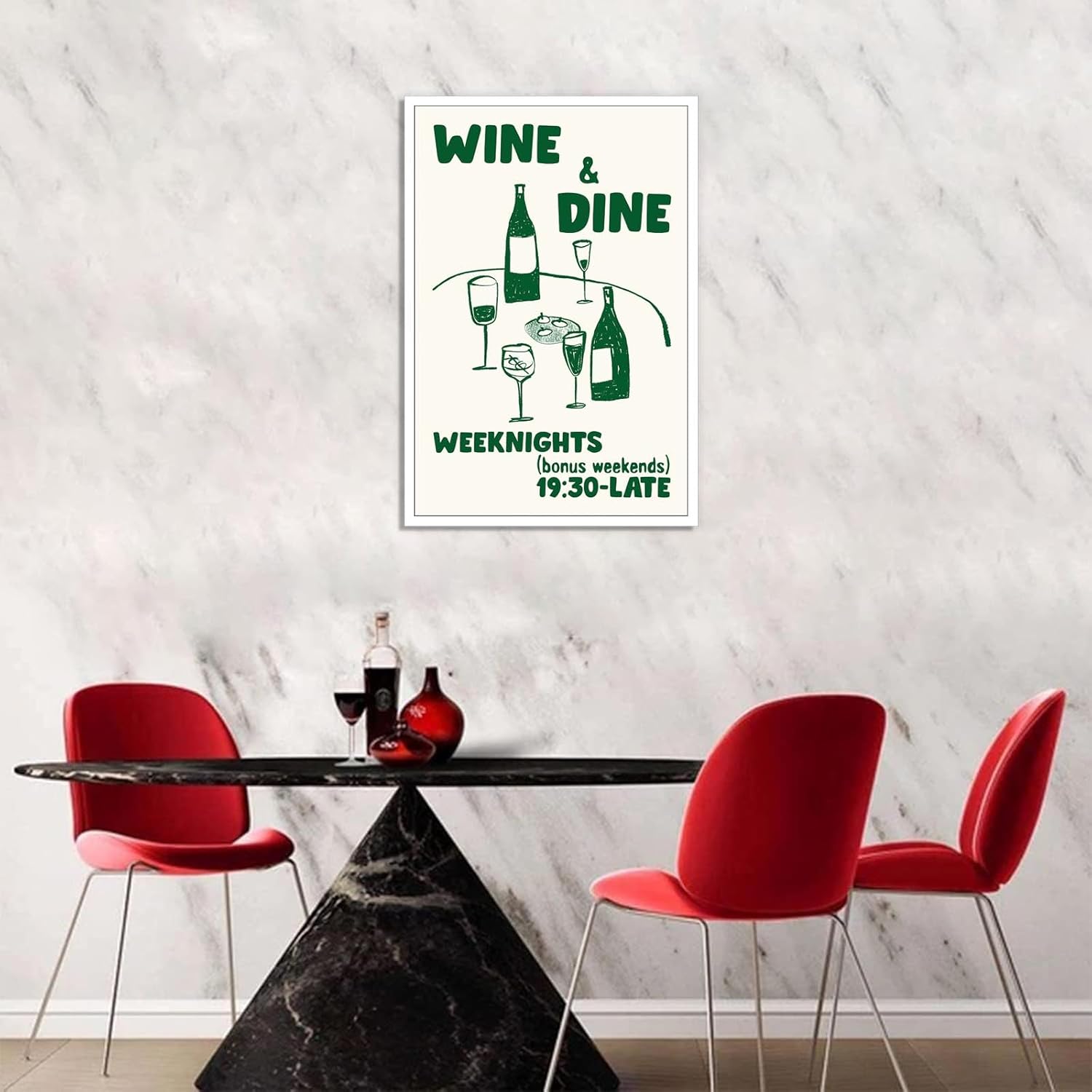 Wine & Dine Aesthetic: This set of food posters perfectly captures the charm of a retro wine & dine club, enhancing your space with its captivating green wine glass cocktail canvas wall art.