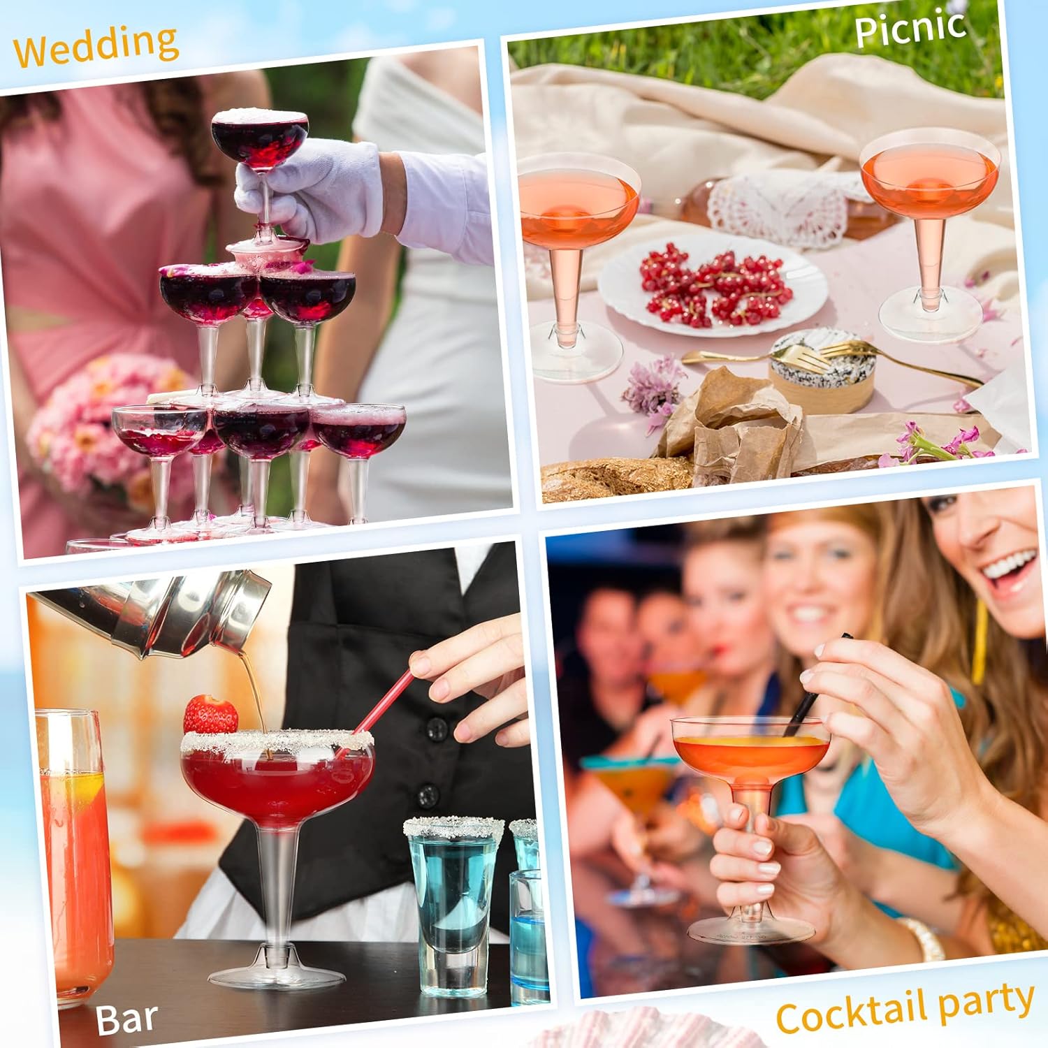 Easy to Assemble and Disassemble: you need to assemble the roots and stems of the plastic coupe glasses for your party before use; Just gently rotate the cup body and the base, so that it can be closely matched and won’t fall off easily, convenient to use